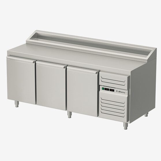 En praktisk och robust pizzakylbänk som passar perfekt för professionella kök och pizzerior.