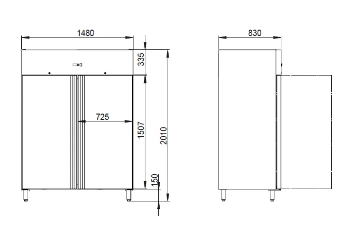 Yttermått (LxDxH): 1480 × 830 × 2010 mm