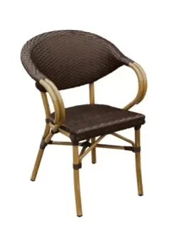 Stolen har svart ram med svart-vit mönstrad konstrotting. Stativet är tillverkat i kraftig aluminium med bambu-look och Ø28 mm stomme. Sitsen är förstärkt i konstrotting.